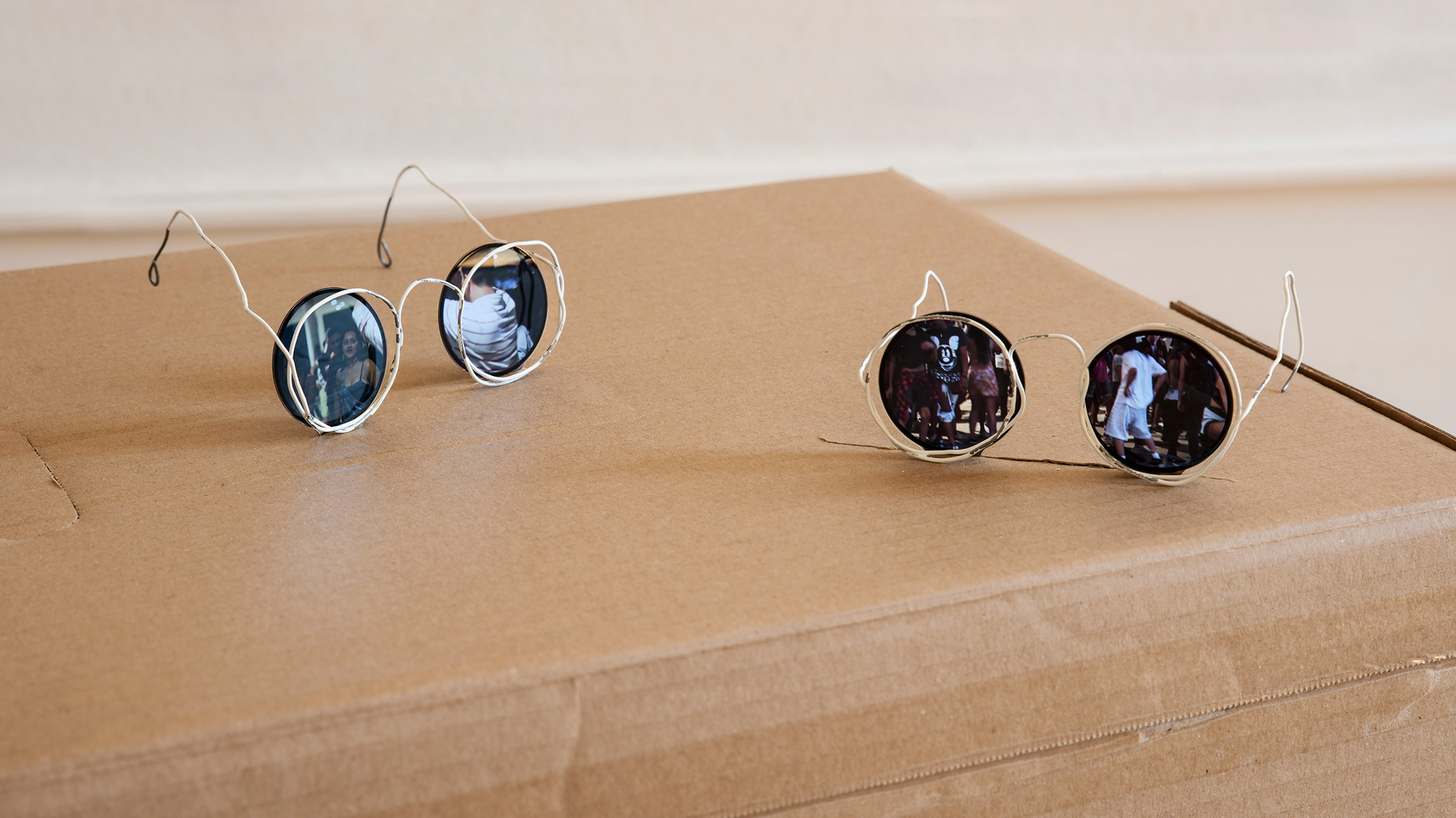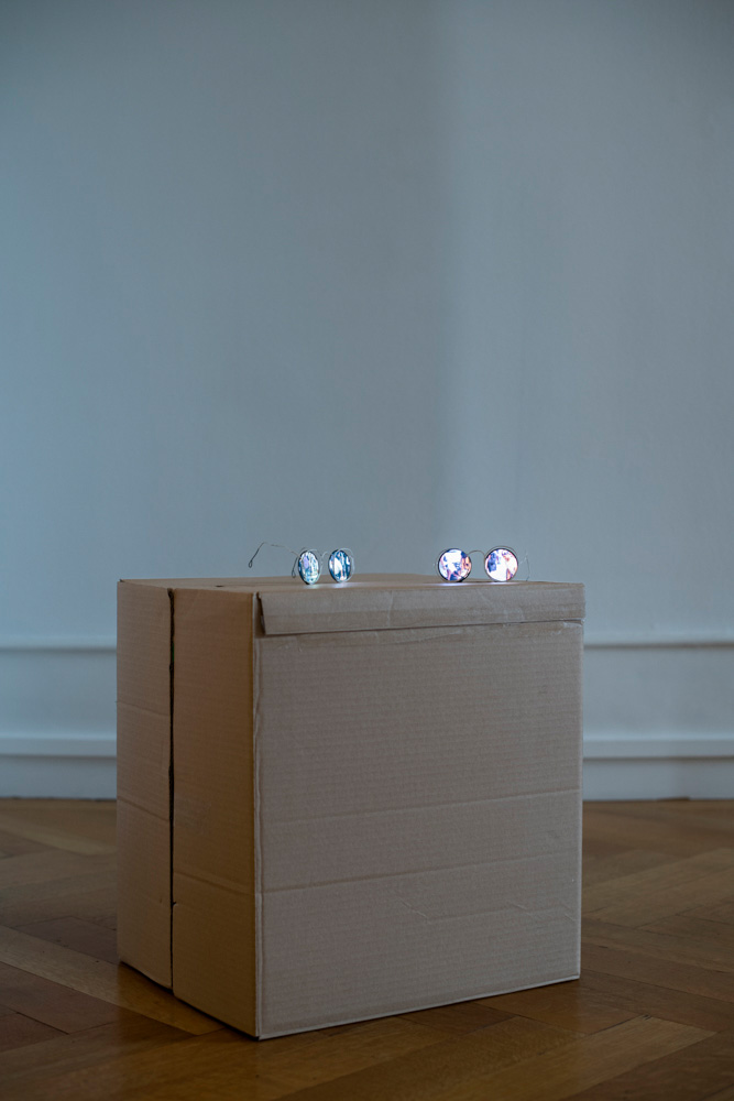 4, 5 — Bounty of the Mutineers, detail. Cardboard box, 1.39” round screens, videos on loop (2’34” and 2’58”). 2020